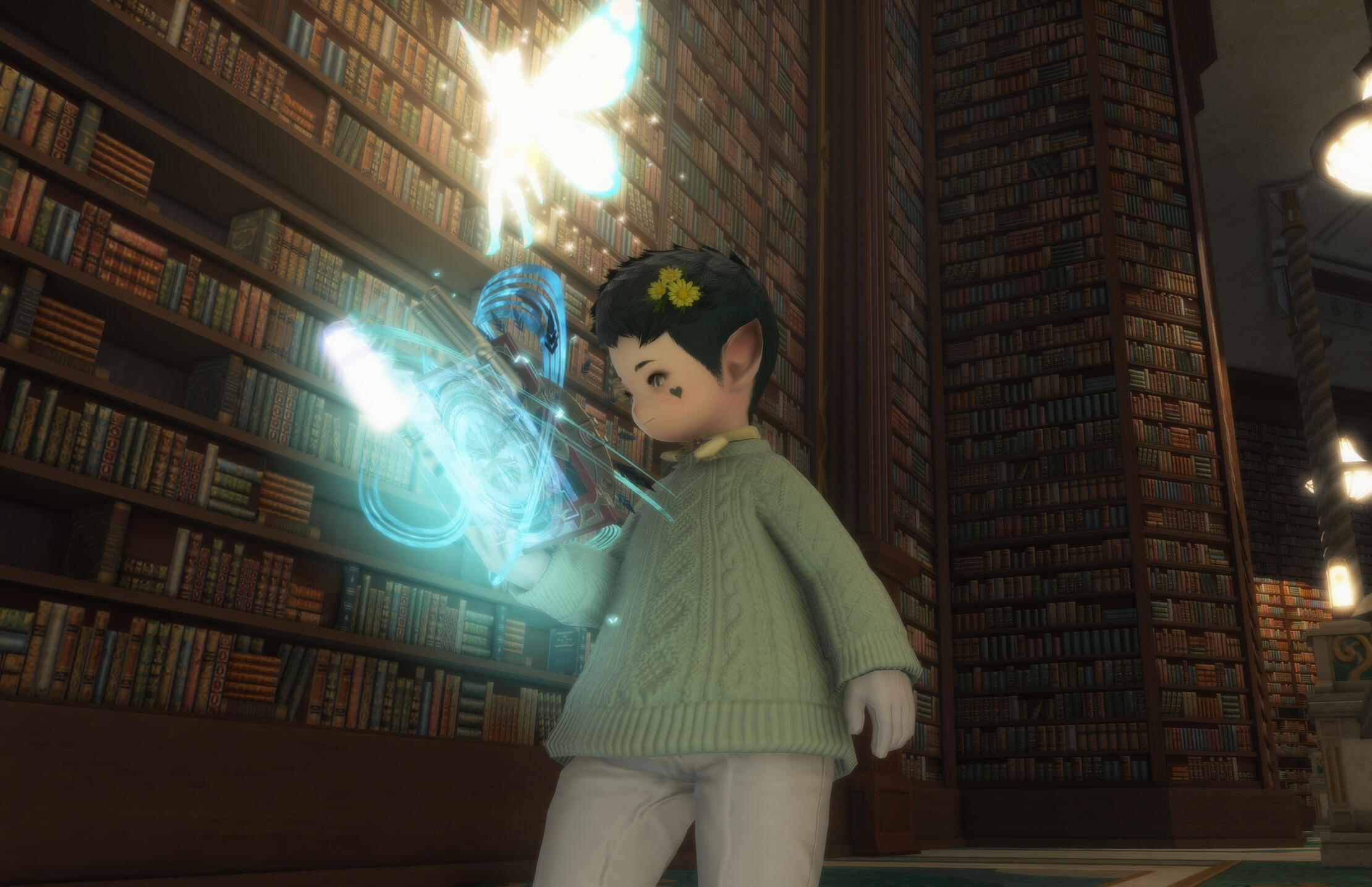 Laflu was born and raised into a simple middle class life in Sharlayan, eventually enrolling in the Studium to study analytical alchemy. He wasn’t the best student as he’d often doze off in class and spend his nights reading faerie tales about ancient Nym. While browsing the Nymian archive in the Noumenon, he accidentally attuned to a Scholar Soul Crystal, summoning a memoryless faerie. Shocked by his irresponsibility, he stopped reading faerie tales and focused on his studies. He would go on to graduate with a thesis on the alchemical flow of minerals in the Northern Empty ocean.